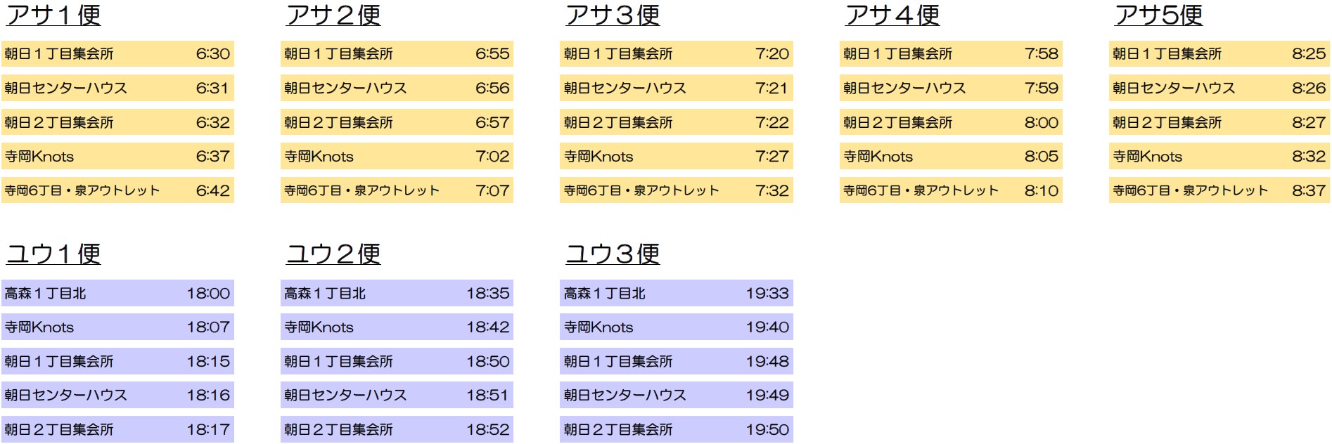 <朝日住民専用送迎バス 時刻表>